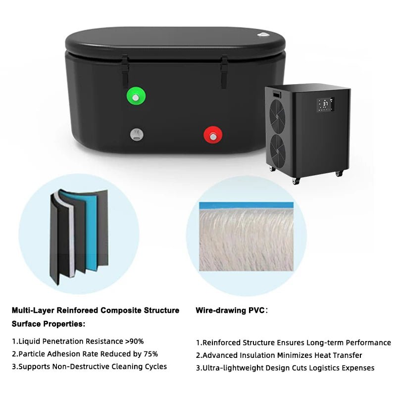 Elevate your recovery experience with the PolarEdge, a cutting-edge portable inflatable oval cold plunge tub paired with a high-performance chiller and filtration system. This design merges flexibility, functionality, and compact luxury—ideal for those who want spa-level cold therapy without the heavy install.