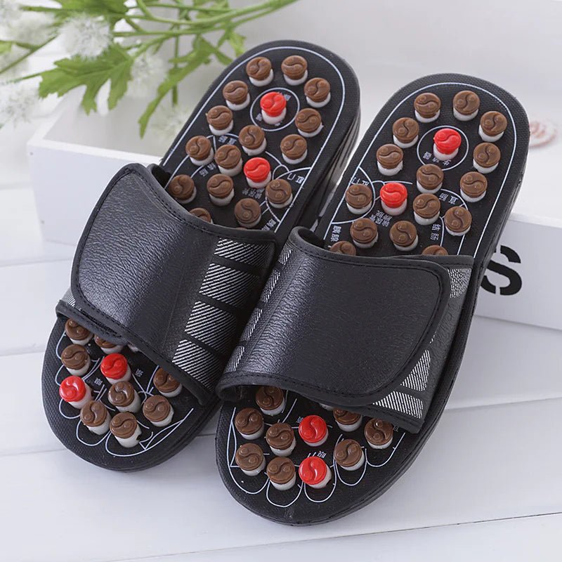 Experience traditional Chinese acupressure therapy every time you walk with these Acupoint Massage Slippers. Designed with strategically placed rotating massage nodes, these medical foot massager sandals stimulate key pressure points, helping to improve circulation, relieve foot fatigue, and enhance overall wellness. Perfect for men and women, these unisex slippers combine comfort with therapeutic benefits, making them ideal for home, gym, or casual wear. Enjoy a natural, non-invasive way to boost energy and relieve daily stress — one step at a time!