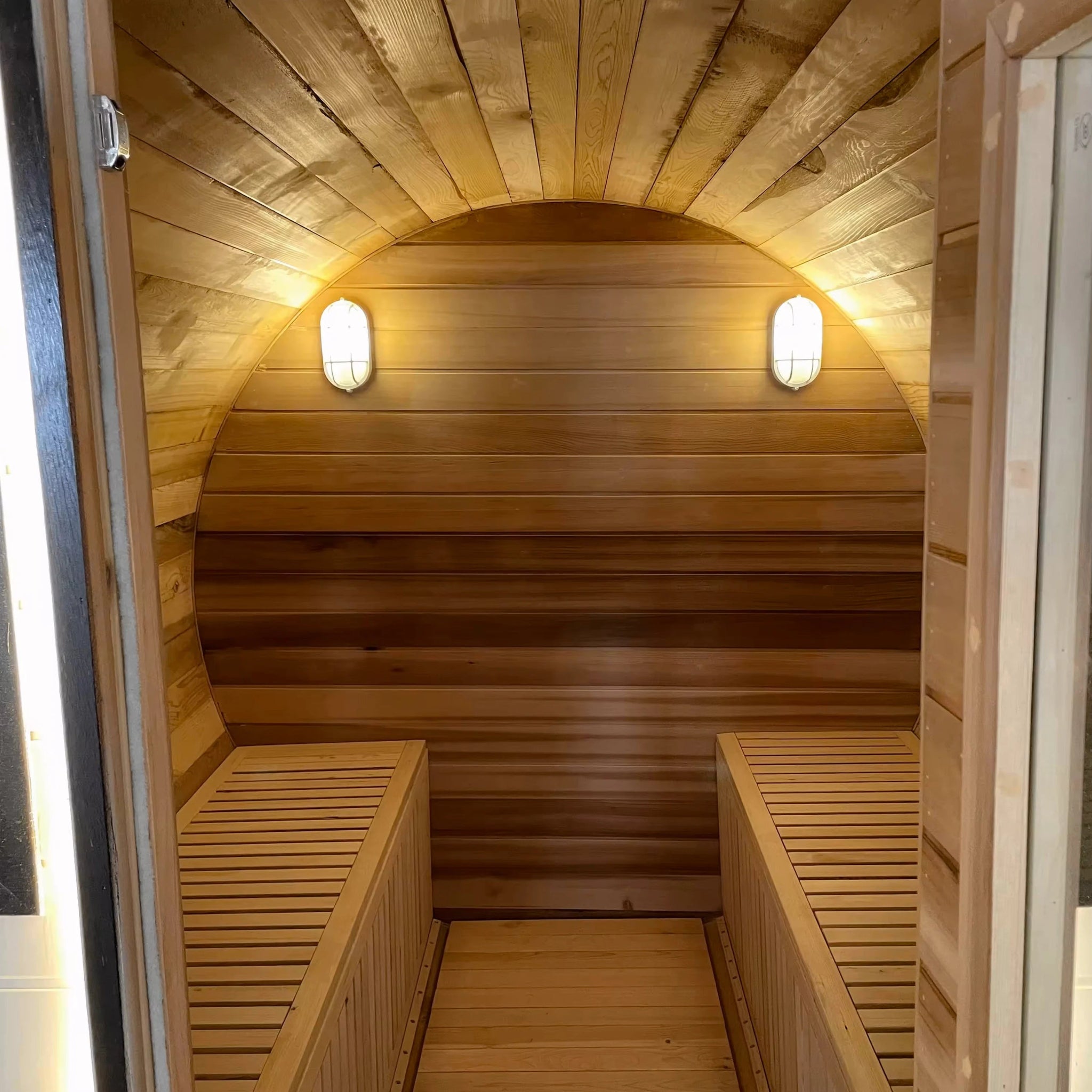 - Stylish Cylindrical Silhouette: A modern alternative to conventional boxy saunas, adding a refined architectural statement to your space.