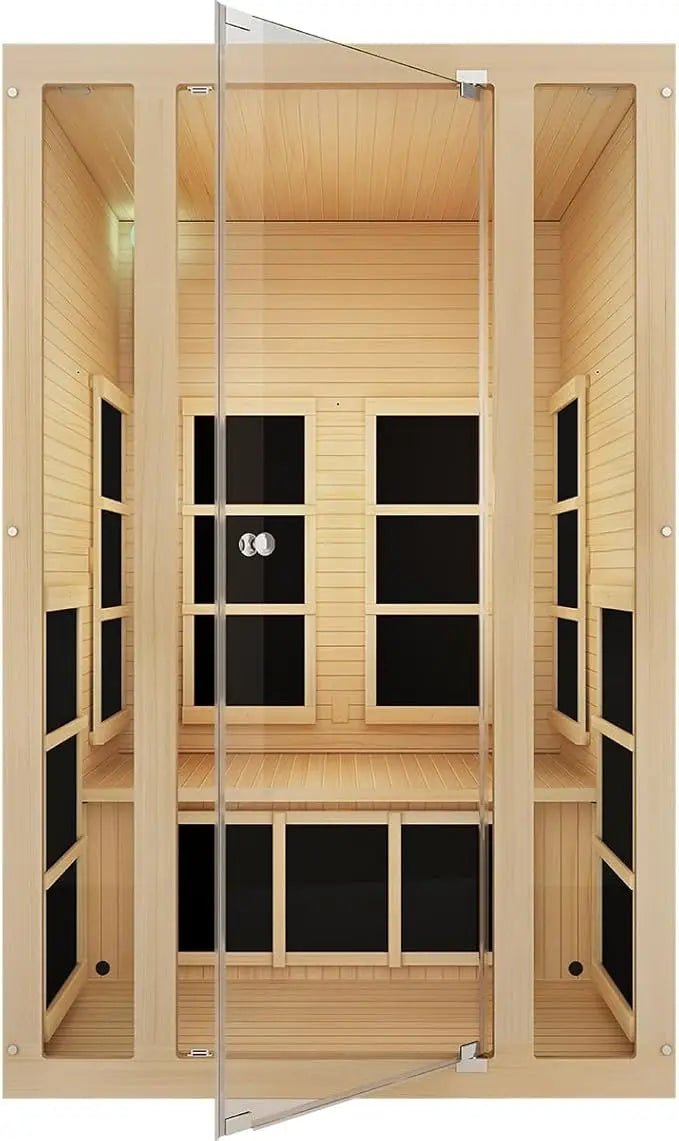 Equipped with powerful carbon fiber far infrared heaters, this sauna ensures consistent and efficient heat distribution throughout the space, providing a soothing and therapeutic experience. -
