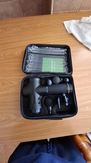 The percussion massager is easy to use and comes with several interchangeable heads for different purposes. Begin on the lowest intensity setting and gradually increase based on comfort. Apply it to sore or tight muscles for short periods (1–3 minutes per area) to help relieve tension and support muscle recovery. Always move the massager slowly and avoid sensitive or bony areas.